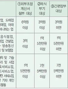 매년 5월 31일까지 종합소득세 납부의무가 있는 개인사업자는 장부의 작성 및 비치 의무에 따라서 간편장부대상자와 복식장부의무자로 구분됩니다. ◈ 간편장부대상자 ① 해당연도에 신규로 사업을 시작한 사업자 ② 직전연도의 수입금액이 다음의 금액에 미달하는 사업자 : 해당업종마다 다름 업종구분 직전연도 수입금액 비고 ① 농업·임업 및 어업, 광업, 도매 및 소매업, 부동산매매업 등, 기타 아래 ②, ③에 해당하지 아니하는 사업 3억원 미만 ② 제조업, 숙박 및 음식점업, 전기·가스·증기 및 수도사업, 건설업, 운수업, 방송통신 및 정보서비스업, 금융 및 보험업 등 1억 5천만 미만 ③ 부동산임대업, 기술서비스업, 사업지원서비스업, 교육서비스업, 보건 및 사회복지서비스업, 예술·스포츠 및 여가 관련 서비스업, 협..